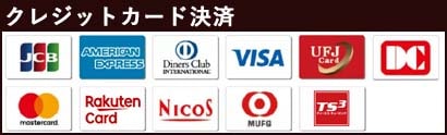クレジットカードはVISA・Master・MUFG・UFJ・NICOS・JCB・TOYOTA(TS3)・AMEX・Diners・DC・楽天カードがご利用いただけます。